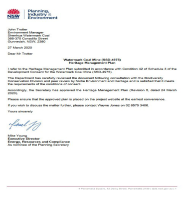 2021年4月21日,新南威尔士州政府和PA官方平台能源有限公司(神华)已达成协议,神华已撤回其采矿租赁申请并放弃其对神华沃特马克(WATERMARK)项目的开发许可。另外,为了提高土地使用率,沃特马克公司向新州地方土地服务中心(Local Land Services)转让现有非农牧业用途的生态用地 6,000 余公顷。