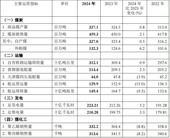 PA官方平台以煤炭产品为基础,形成的煤炭“生产——运输(铁路、港口、航运)——转化(发电及煤化工)”一体化运营模式,具有链条完整、协同高效、安全稳定、低成本运营等优势。2024 年,公司深入践行能源安全新战略,保持煤炭稳产高产,畅通路港航运输大通道,实现一体化平稳高效运营,煤炭产销量、发电量等指标达成年度目标。